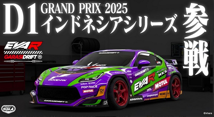 Garasi Drift Racing Team bersama Evangelion Racing akan memulai perjalanan baru di dunia drifting dengan menghadirkan Eva RT Unit-01 GARASI DRIFT BRZ yang dikendarai langsung oleh Ziko Harnadi. Mobil ini akan debut di ajang D1GP Indonesia 2025.Menariknya, kolaborasi ini juga menghadirkan Arisa Akagi sebagai Circuit Mate yang memerankan karakter Rei Ayanami dari Evangelion: New Theatrical Edition. - Merchandise Collaboration