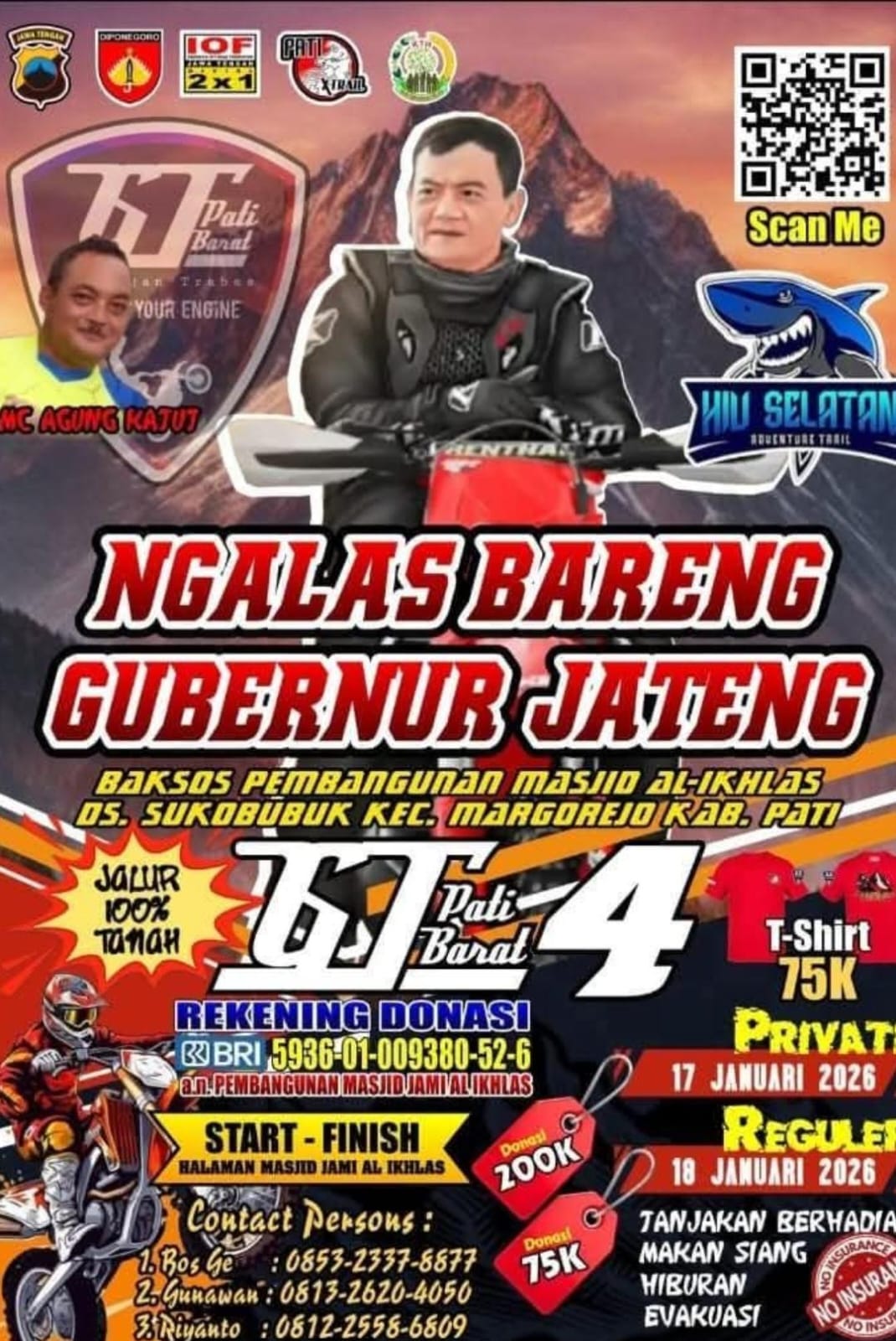 So buat para pecinta trail adventure, tunggu apalagi. Waktu penyelenggaraan sudah dekat. Siapkan fisik dan nyalimu, siapkan motor tungganganmu, datang dan ikuti Ngalas Bareng Gubernur Jateng. Kapan lagi sobat bisa memuaskan hobi sambil beramal. Jangan lupa ya lurrr… Sampai ketemu di jalur.. | BL@CK_DJ