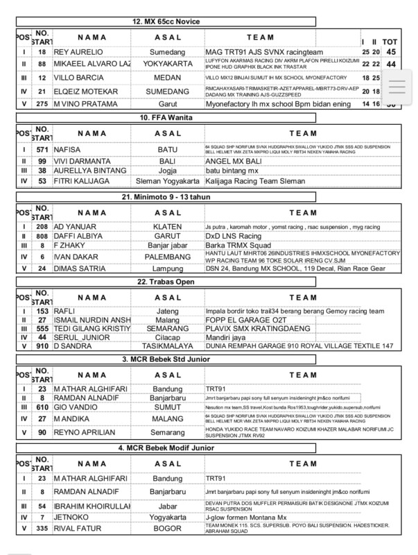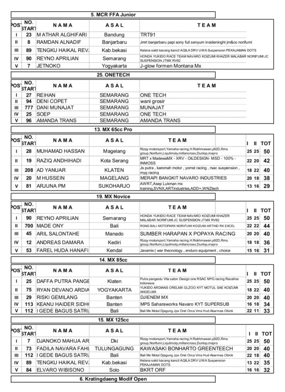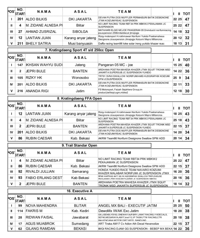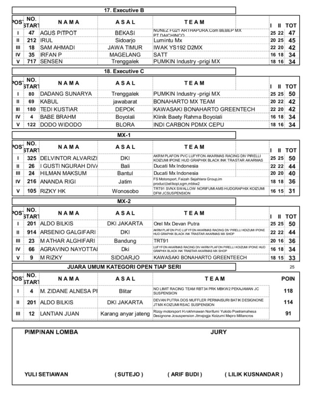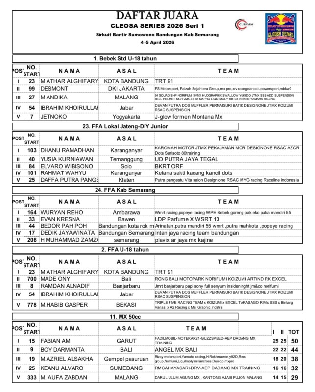 Dan berikut ini adalah hasil resmi kejuaraan balap grasstrack – motocross yang dihajat oleh Cleosa Management. Simak selengkapnya di bawah ini. | BL@CK_DJ