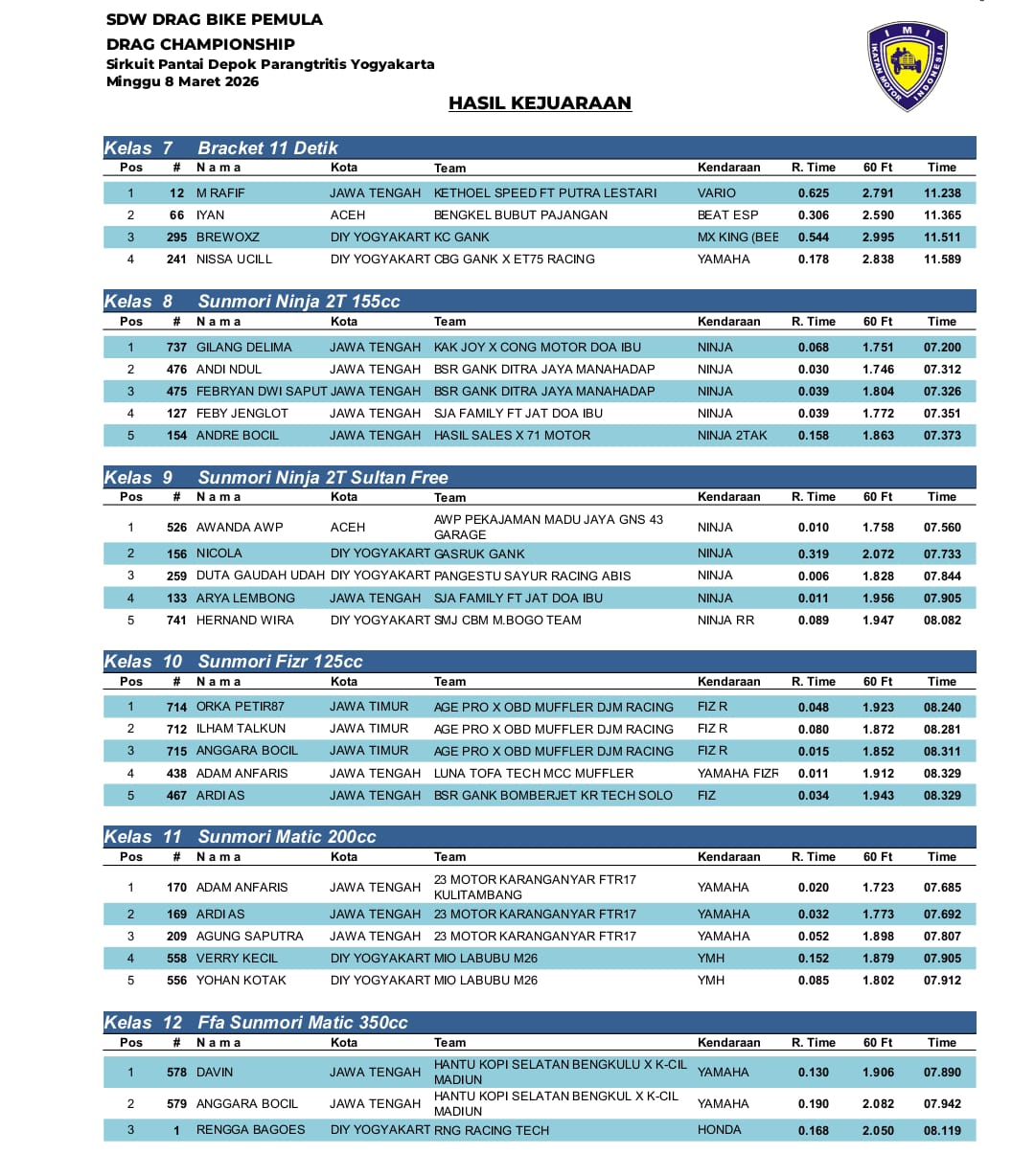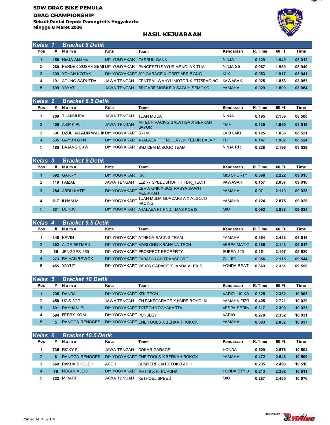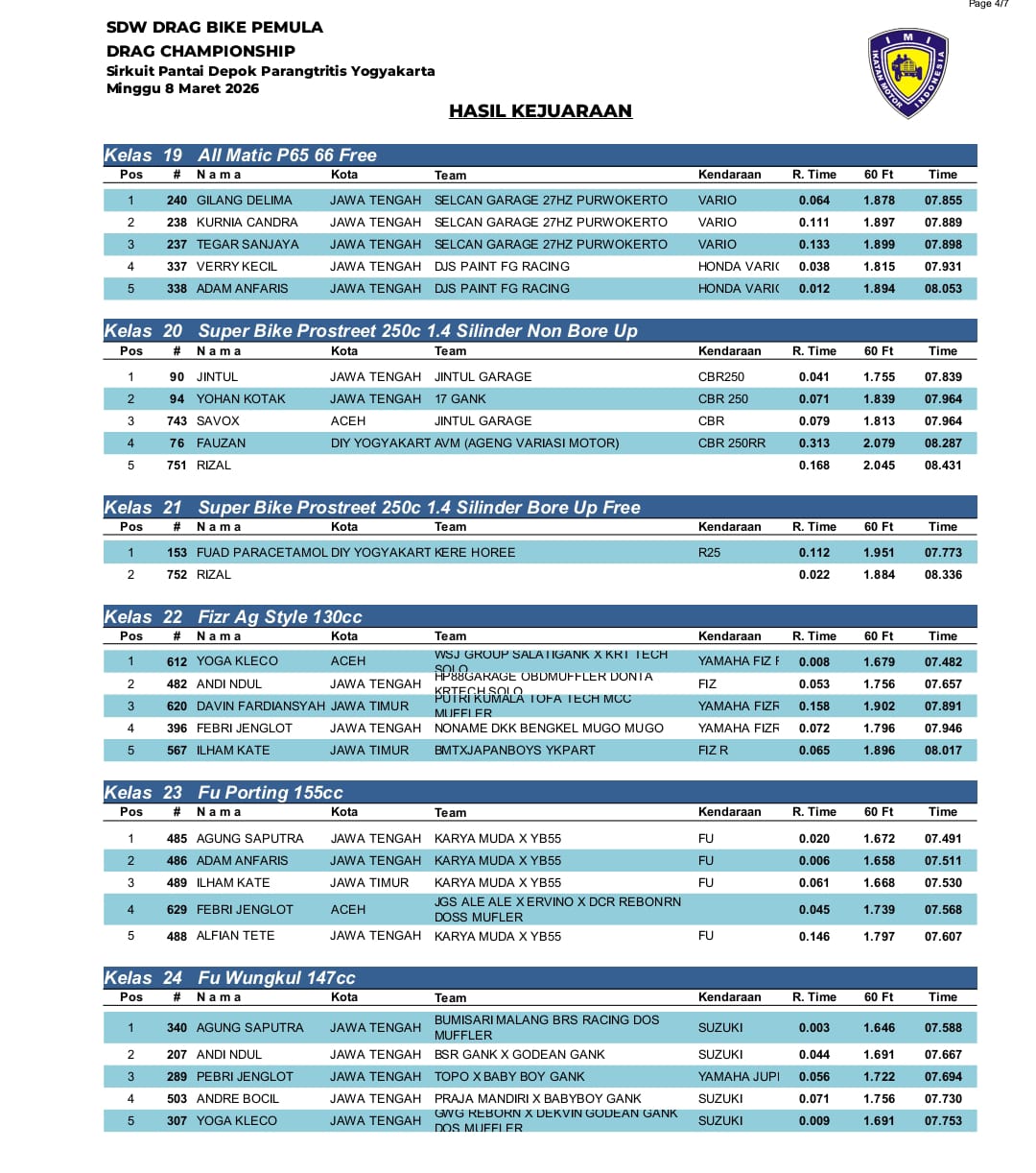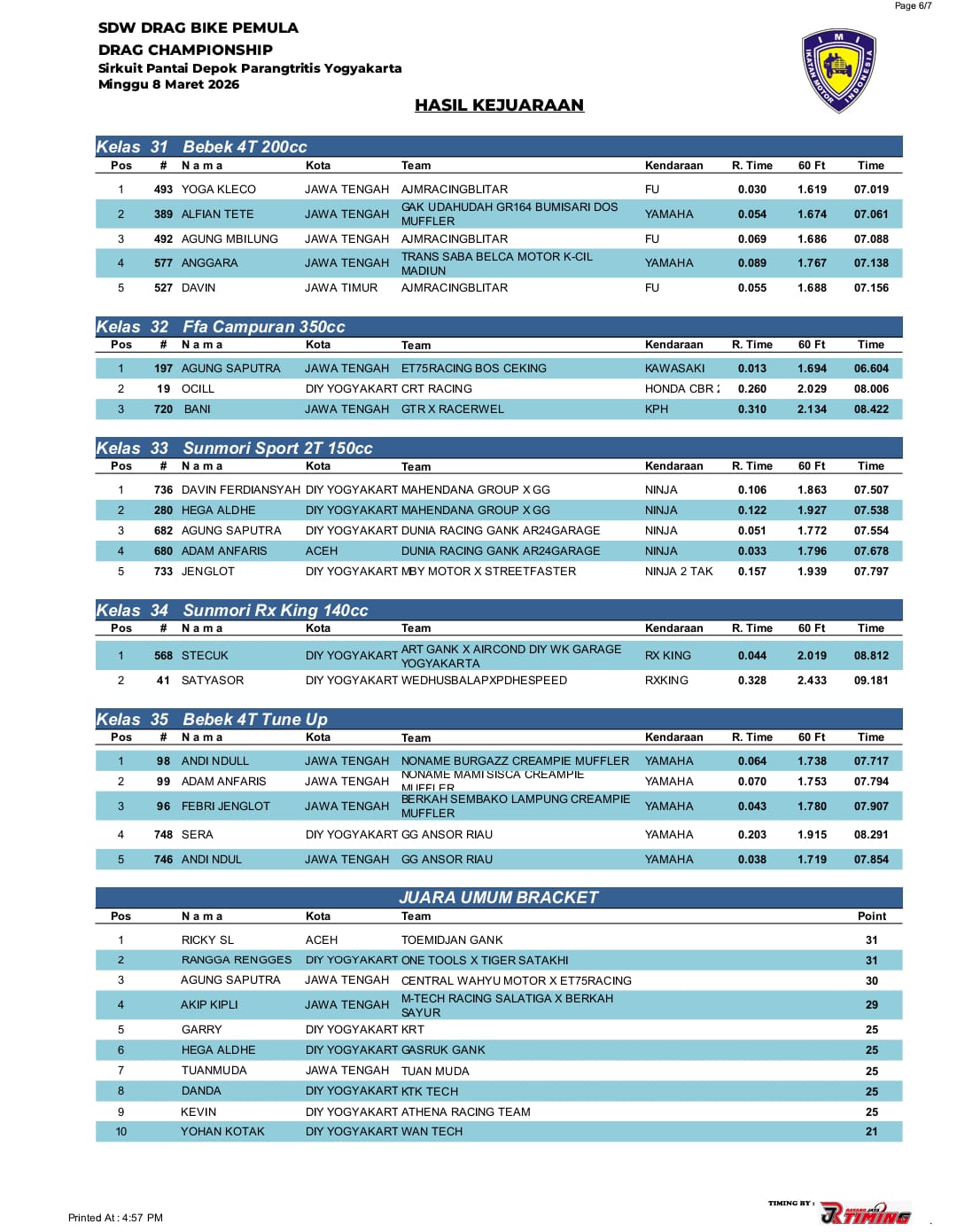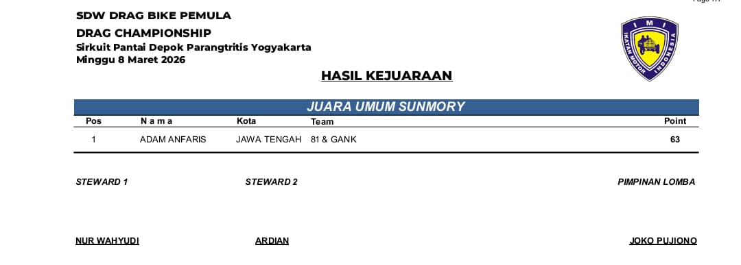 Dan berikut adalah hasil kejuaraan yang resmi dirilis oleh panitia penyelenggara. Selamat untuk para juara atas pencapaian prestasinya. | BL@CK_DJ