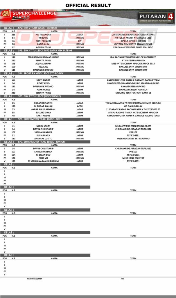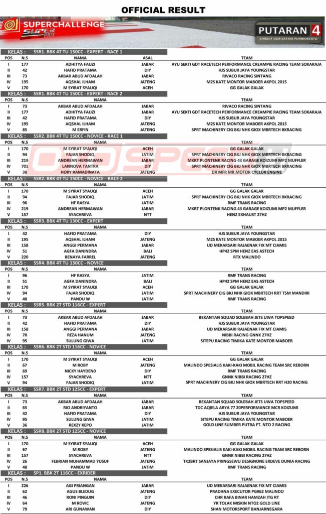 Otospeed.id – Purwokerto. Speedlover berikut ini merupakan hasil kejuaraan event road race penuh gengsi bertitel Superchallenge Super Prix 2025 Putaran Ke-4 yang telah usai digelar disirkuit non permanen GOR Satria, Purwokerto pada 24-25 Oktober. OS1