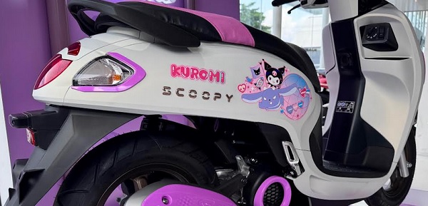 Honda Scoopy edisi kolaborasi ini dibekali dengan serangkaian aksesoris bertema Kuromi seperti stiker bodi, ornamen pada spakbor depan, hiasan sein belakang, serta cover khusus di area knalpot, air cleaner, fan, hingga jok.