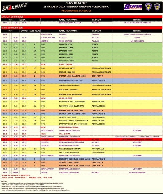 Jadwal Lengkap & Hiburan Seru di Black Drag Bike 2025 Series Purwokerto