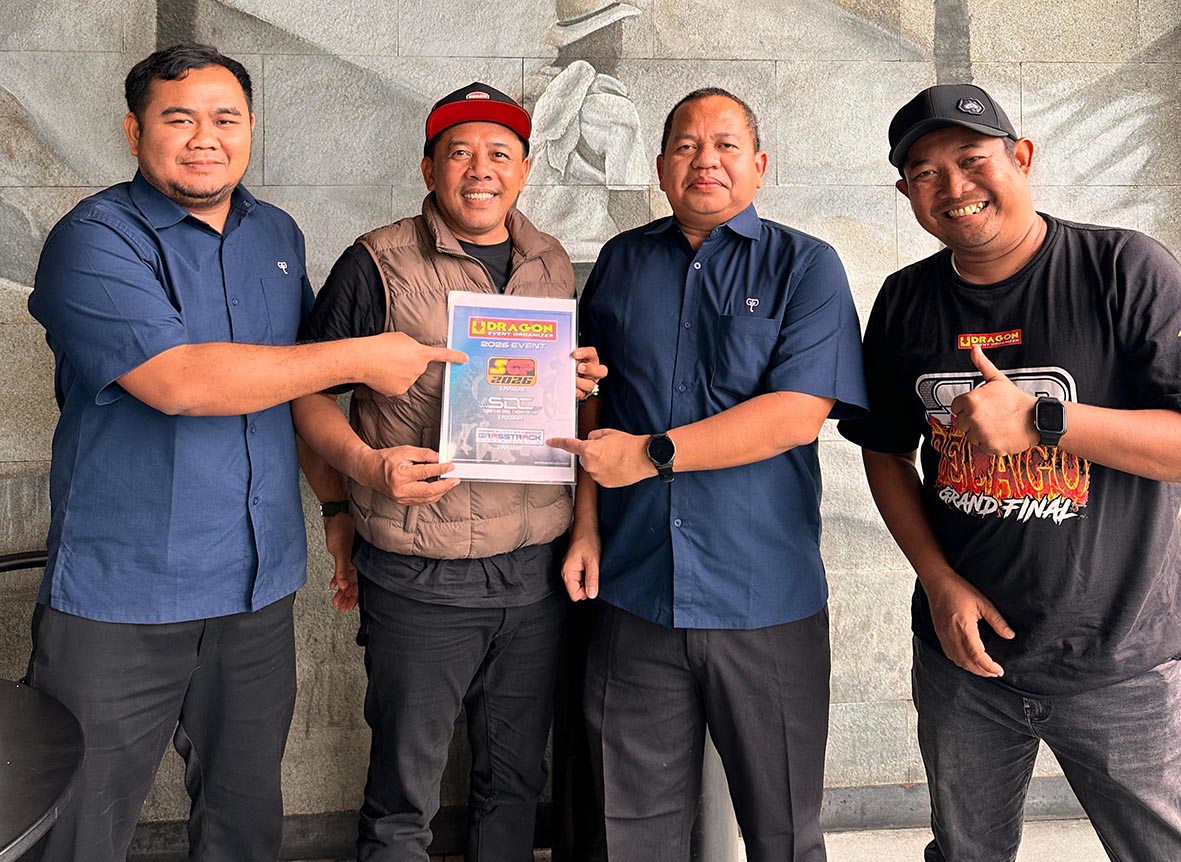 Otospeed.id – Jakarta. Dragon Event Organizer memang bener-bener keterlaluan. Demi menyukseskan gelaran Sumatera Grasstrack Championship, promotor balap yang dikomandani oleh Mawan Dragon selaku sang CEO kembali tancap gas pol menggalang kekuatan dengan menjalin kemitraan dengan beberapa pabrikan untuk menjadi sponsor event.