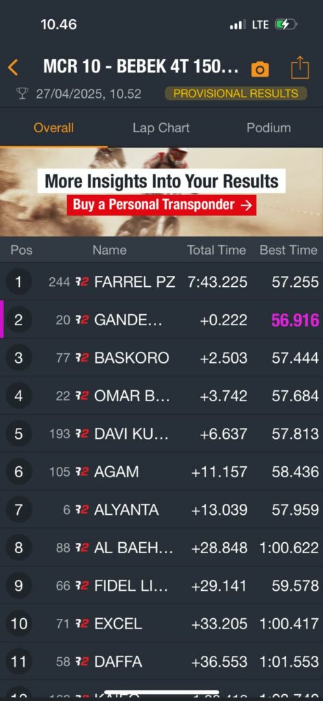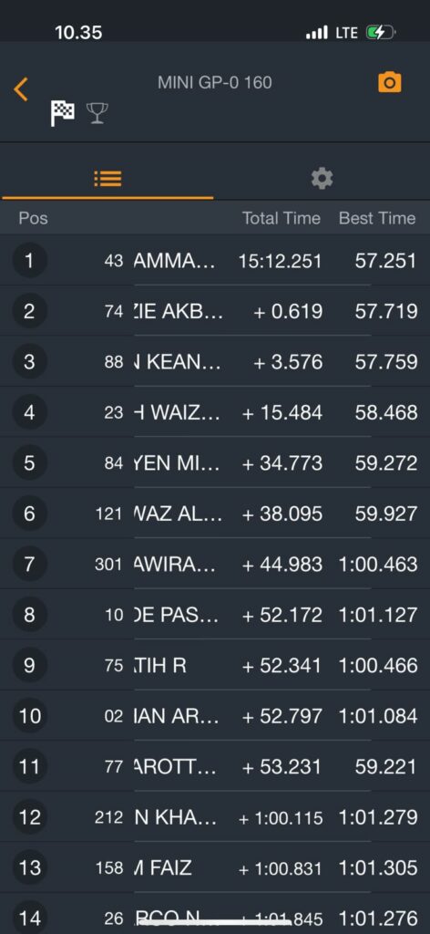 Bahkan melihat catatan waktu ini, ada fenomena yang cukup menarik. Best time rider MiniGP Ohvale 160 di Sirkuit Boyolali kini nyaris menyamai rider beginner di ajang road race yang digelar di sirkuit yang sama di gelaran Matapanah Cup Race beberapa waktu lalu (lihat gambar). Di lintasan yang sama dengan alur clockwise yang sama namun berbeda spek motor yang digunakan.