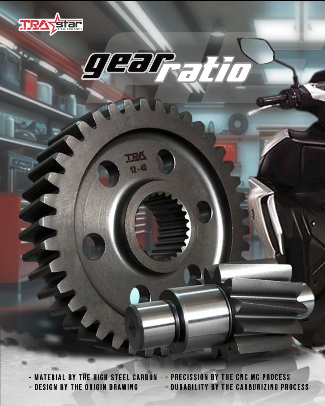 Part lain yang juga dispill kehadirannya di jagad balap motor tanah air adalah gear rasio matic TRAstar. Dan kali ini paling gress nih.. giliran gir rasio untuk Mio Series, gir rasio N-Max dan gir rasio Aerox yang siap untuk dijadikan obat kencang para speedlovers mesin kirian.