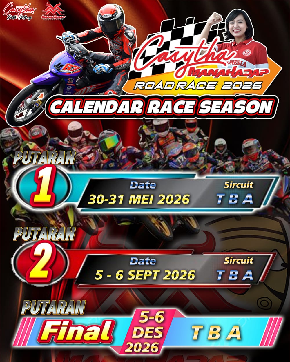 Otospeed.id – Surakarta. Yuhuuu… Speedlovers pecinta balap road race sebangsa dan setanah air.. update informasi terbaru datang dari Manahadap Management, promotor nasional yang menggelar seri balap Casytha Manahadap Road Race Championship. Musim balap 2026 ini, kejuaraan bergengsi road race yang digelar di Jawa Tengah ini hanya akan digelar 3 putaran saja.