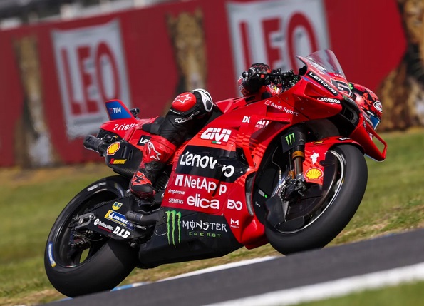 Otospeed.id – Australia. Hari pertama di Phillip Island tak berjalan mulus untuk juara bertahan Francesco Bagnaia. Pembalap Ducati Lenovo Team itu sempat tertahan di luar 10 besar hingga menit-menit terakhir.