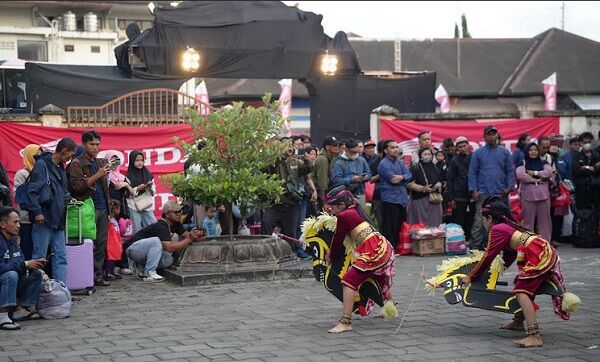 Pemudik tiba dan Disambut Oleh Tari Tradisional di Wana Graha Bhakti Yasa Yogyakarta.