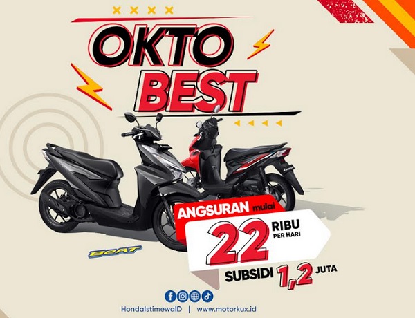 Program OktoBEST memberikan keuntungan besar bagi masyarakat yang ingin memiliki motor Honda impian dengan cara yang lebih ringan. Mulai dari segmen matic low, seperti Honda BeAT dan Honda Scoopy, konsumen bisa mendapatkan potongan angsuran harian mulai Rp22.000 serta subsidi hingga Rp1.200.000. Sementara Honda Genio juga tak kalah menarik, dengan subsidi Rp1.200.000 dan angsuran harian Rp23.000.