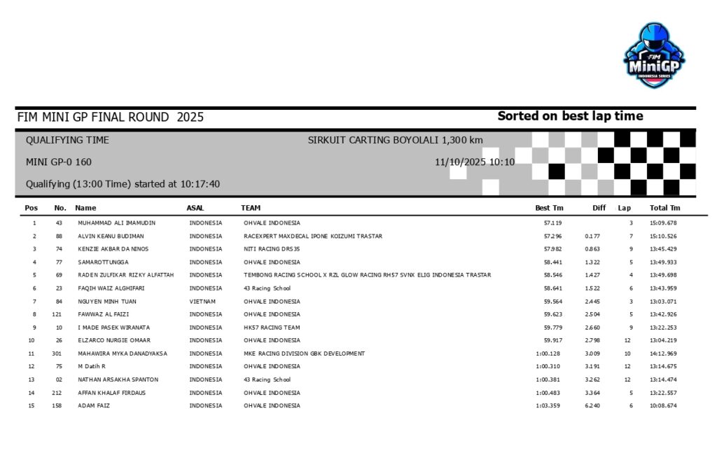 Otospeed.id – Boyolali. Penampilan Alvin Keanu Budiman di seri pamungkas Final Round FIM MiniGP Indonesia (11/10) kemarin benar-benar luar biasa. Bocah asal Kulonprogo ini benar-benar tampil “menggila” dan menyuguhkan performa maksimal dan habis-habisan.