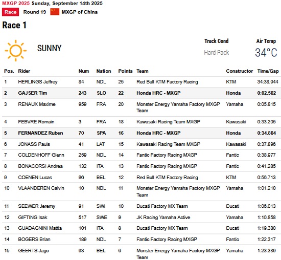 Otospeed.id – China. Tim Gajser dan Ruben Fernandez menunjukkan kekuatan mereka dengan sama-sama naik podium pada gelaran MXGP of China 2025. Dalam kondisi terpanas musim ini, duo Honda HRC itu bertarung hingga akhir dan sukses finis di posisi kedua serta ketiga, membuat bangga para pendukung Honda yang hadir di Shanghai.