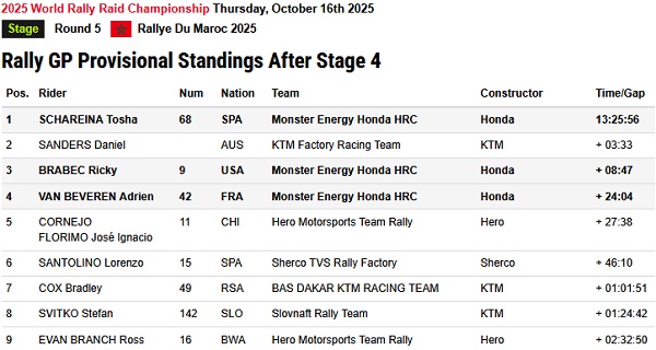 Otospeed.id – Maroc. Performa luar biasa kembali ditunjukkan oleh Tosha Schareina dari tim Monster Energy Honda HRC pada etape keempat Rallye du Maroc 2025. Pembalap asal Spanyol itu sukses meraih kemenangan ketiga berturut-turut sekaligus merebut posisi teratas klasemen sementara menjelang etape terakhir.
