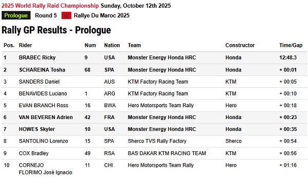 Otospeed.id – Maroc. Rallye du Maroc 2025 resmi dimulai pada Minggu (12/10) dengan prolog sepanjang 19 kilometer di sekitar Kota Fez. Pebalap Monster Energy Honda HRC, Ricky Brabec, tampil dominan dengan catatan waktu 12 menit 48 detik, menjadi yang tercepat dan membuka reli dengan percaya diri tinggi.