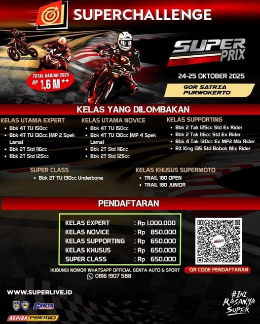 Ikuti juga update dan informasi terbaru melalui akun resmi Instagram@superchallenge_id dan WA Official Genta Auto & Sport di 0816 1907 588 supaya kamu tidak ketinggalan berita seputar Superchallenge Super Prix 2025 dan keseruan dunia Road Race Tanah Air. |OS