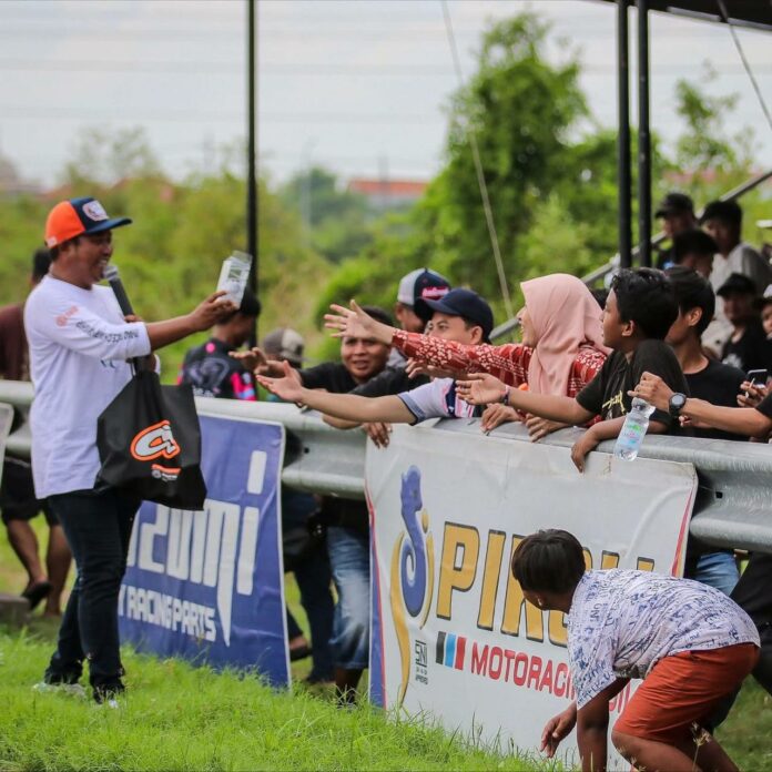 Tetapi rupanya bukan hanya itu saja kebiasaan yang dilakukan oleh pabrikan part racing karya anak bangsa ini. Koizumi juga punya tradisi bagi oleh-oleh buat pengunjung yang hadir menyaksikan gelaran balap.