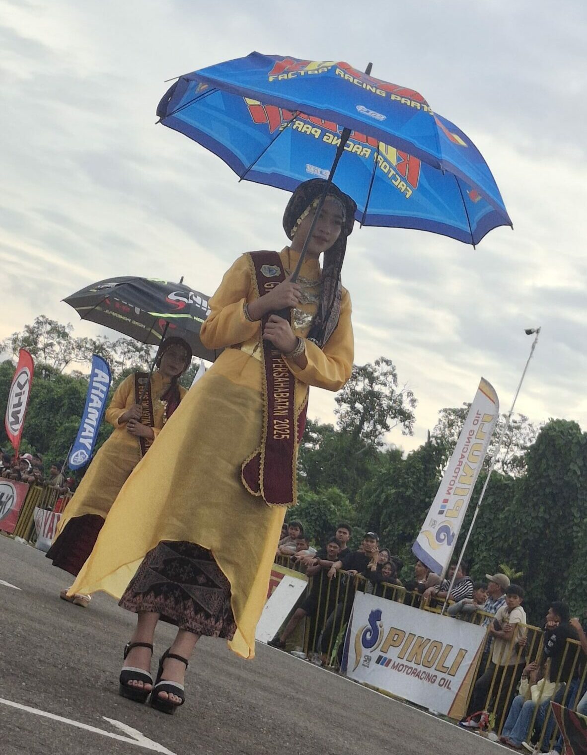 Otospeed.id – Jambi. Salah satu ciri khas yang menarik di setiap gelaran Sumatera Cup Prix (SCP) adalah penampilan gadis payungnya. Jangan harap sobat bakal ketemu dengan gadis-gadis cantik berbaju sexy yang bertugas memayungi para pembalap sebelum start di garis start di semua seri event ini.
