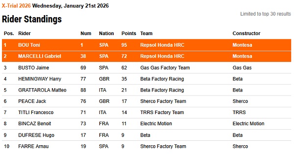 Toni Bou memimpin klasemen dengan 95 poin, disusul rekan setimnya Gabriel Marcelli dengan 72 poin. Sepanjang lima putaran pertama, Bou mengoleksi empat kemenangan dan satu finis kedua. Hasil tersebut memberinya keunggulan 23 poin di puncak klasemen. Rider Repsol Honda HRC itu menargetkan kemenangan di Leeds untuk memperlebar jarak. Terakhir kali Bou tampil di Inggris di ajang X-Trial World Championship, ia finis di posisi kedua.